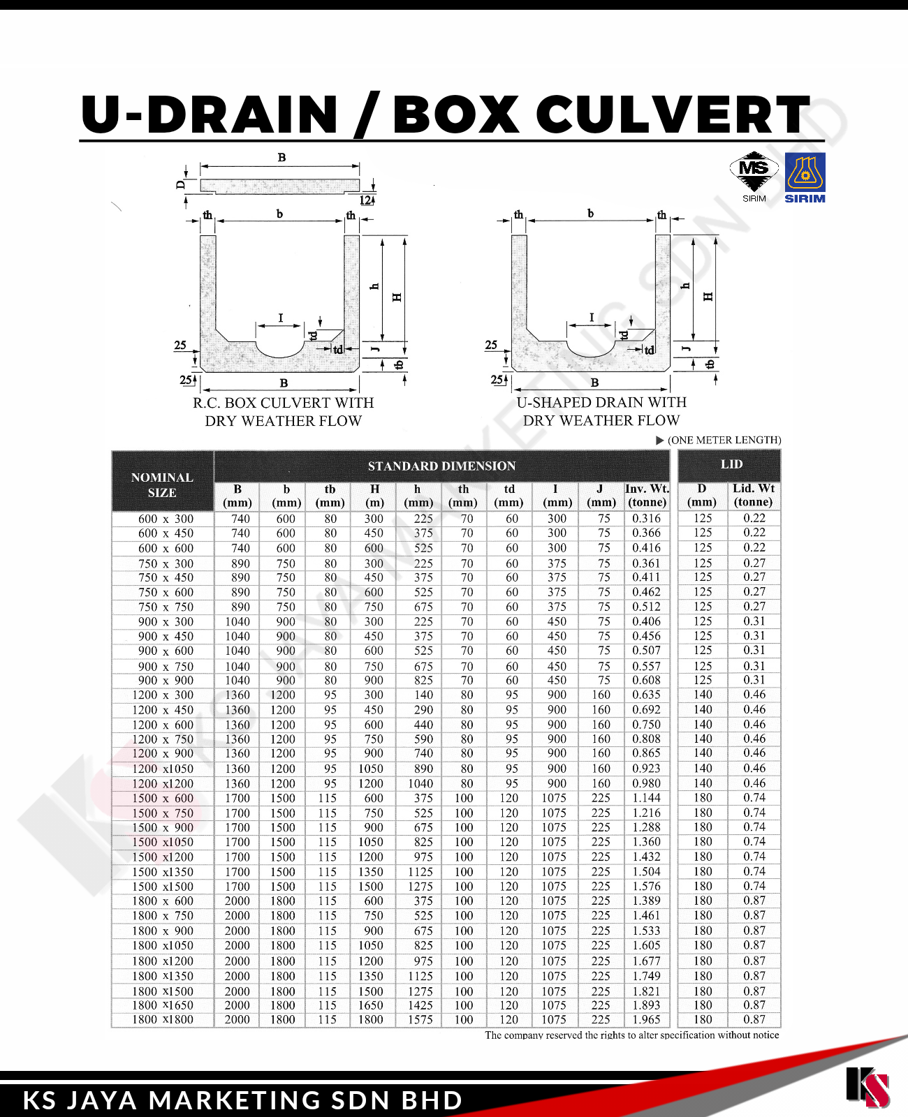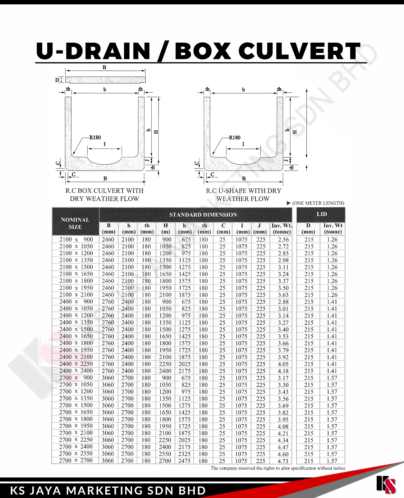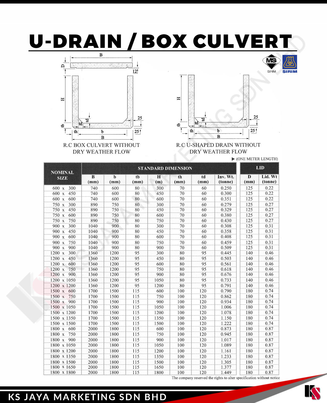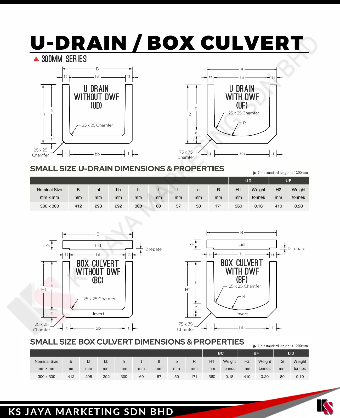 At KS Jaya Marketing Sdn Bhd, we provide high-quality U-Drain/Box Culverts designed to effectively manage water flow and drainage in a wide variety of infrastructure projects. Our U-Drain/Box Culverts offer superior strength, durability, and performance, making them the ideal choice for stormwater management, road construction, agricultural drainage, and other essential infrastructure systems.