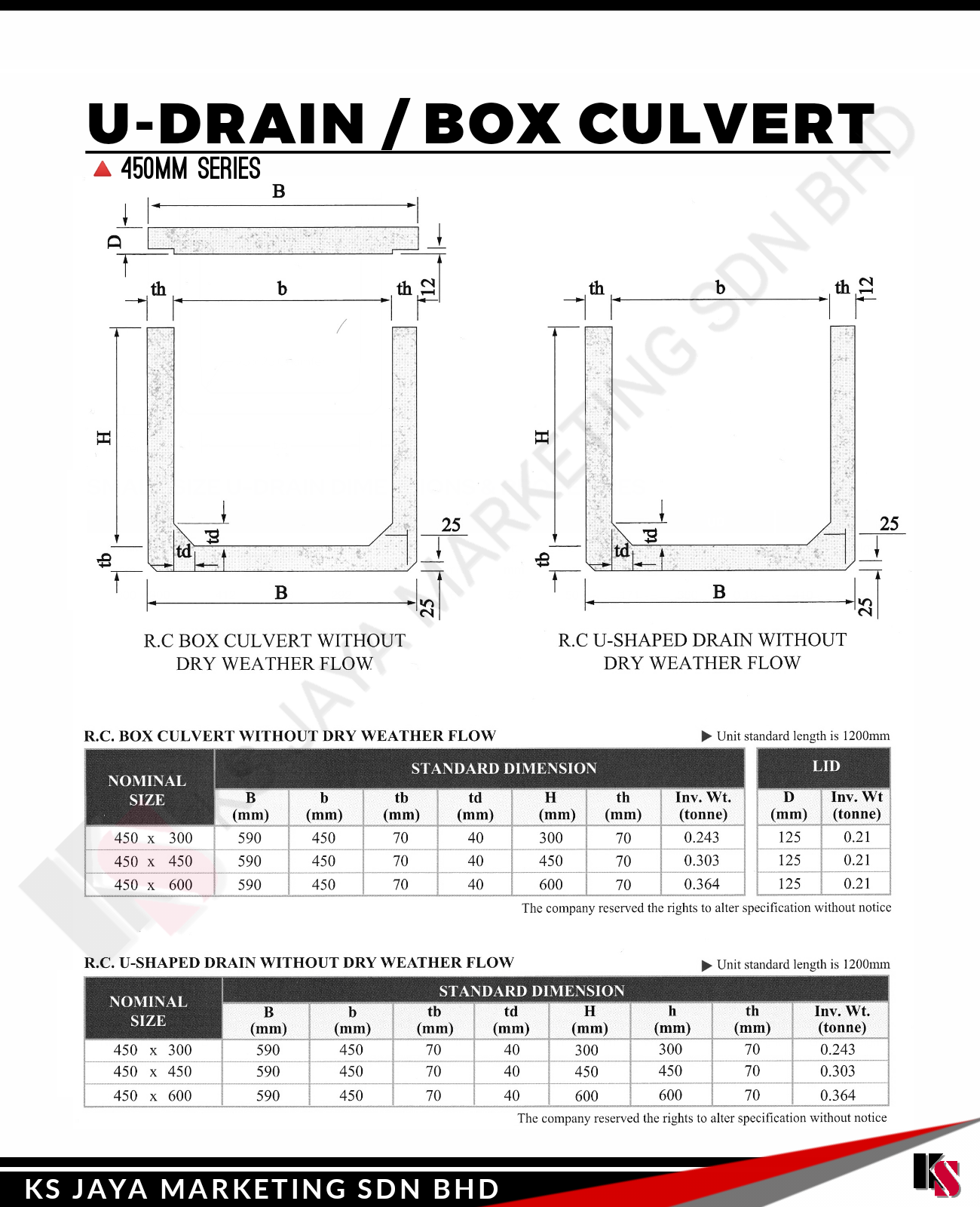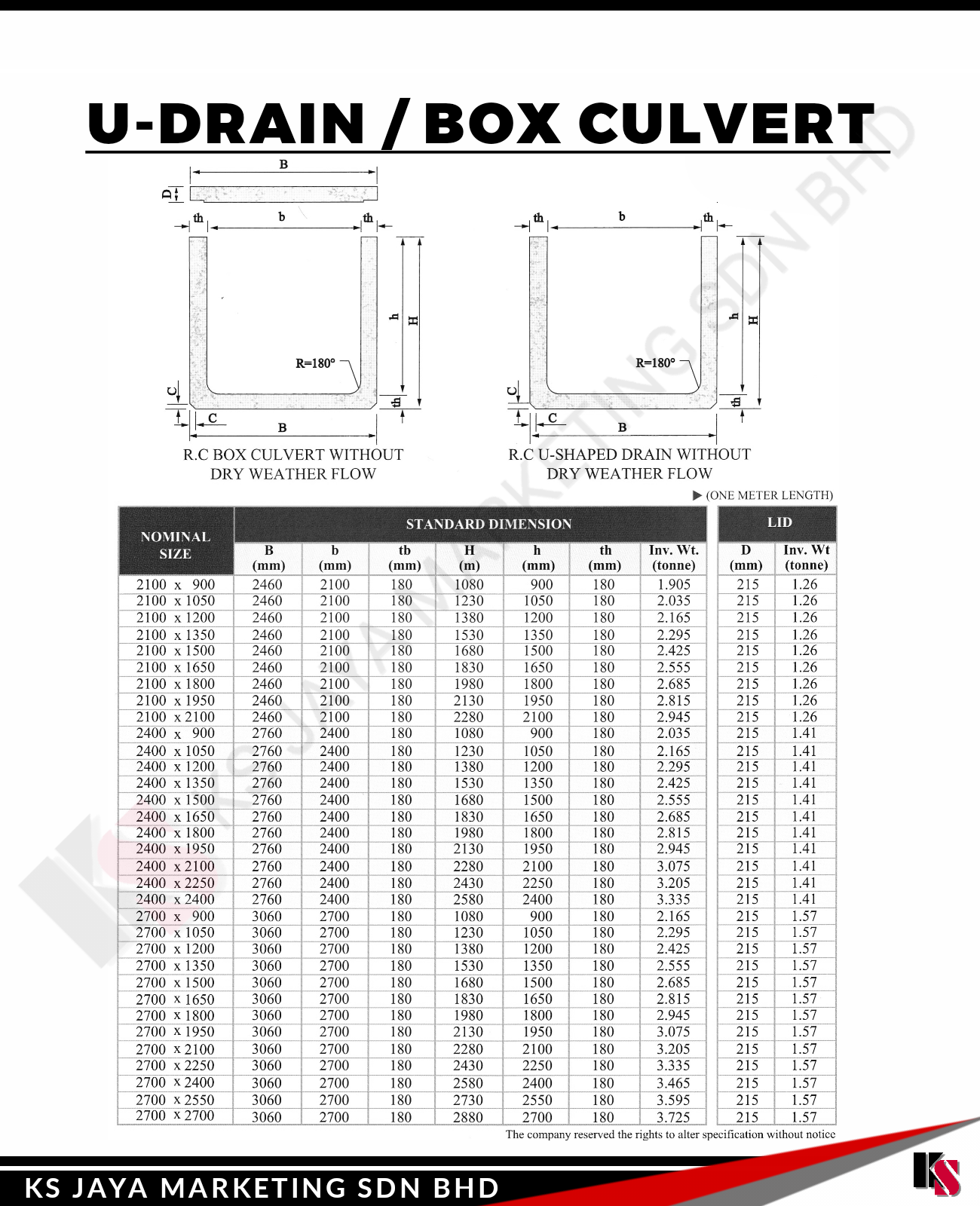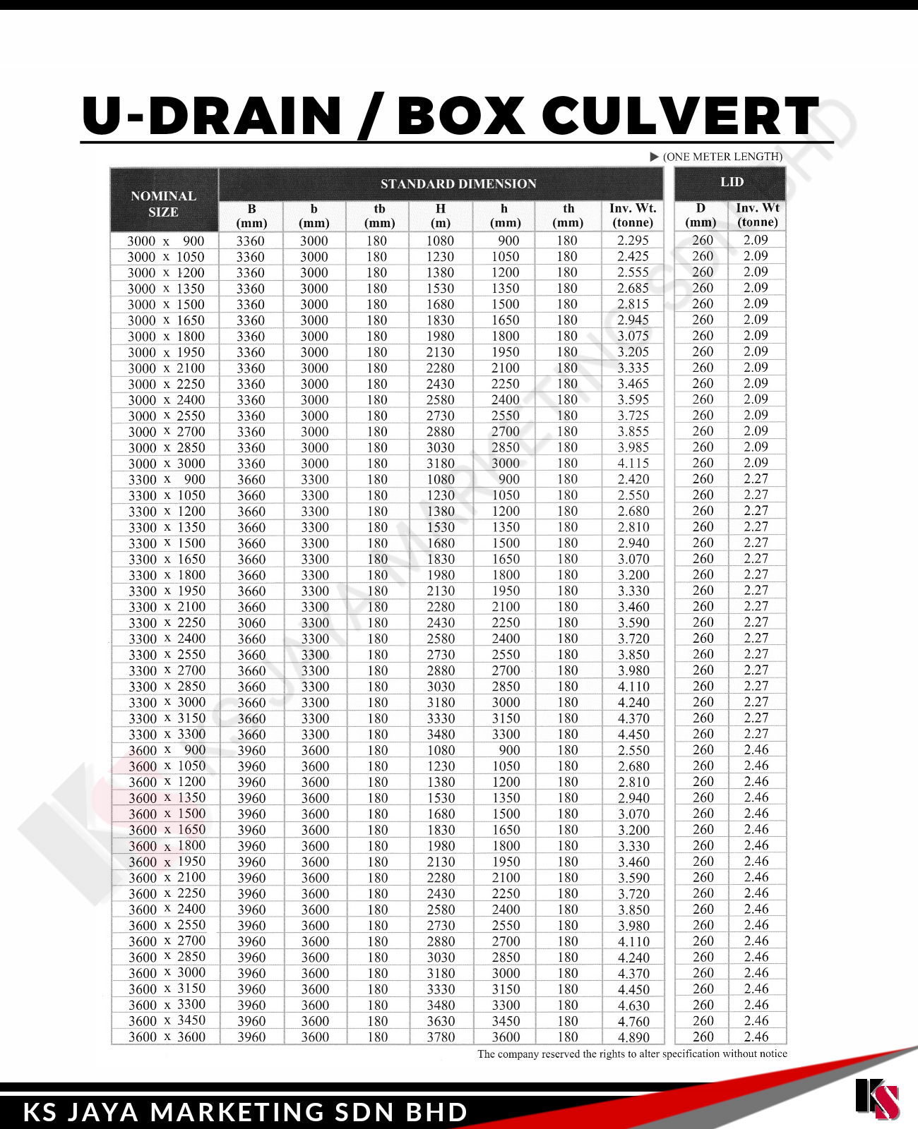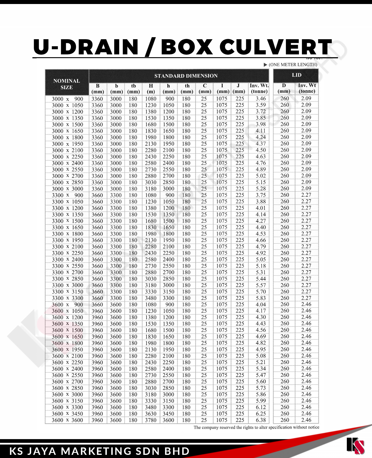 At KS Jaya Marketing Sdn Bhd, we provide high-quality U-Drain/Box Culverts designed to effectively manage water flow and drainage in a wide variety of infrastructure projects. Our U-Drain/Box Culverts offer superior strength, durability, and performance, making them the ideal choice for stormwater management, road construction, agricultural drainage, and other essential infrastructure systems.